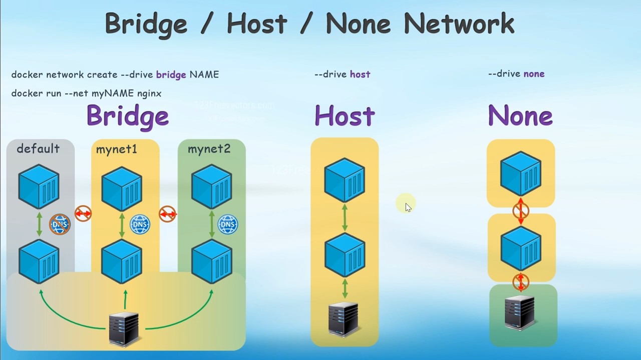 HOST и NONE может быть только 1й сетью в системе (т.е. нельзя создать 2а host или 2 none)