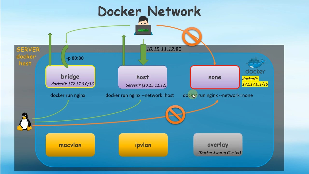 macvlan – для каждого контейнера создается виртуальная сетевая карта со своим ip и mac адресом